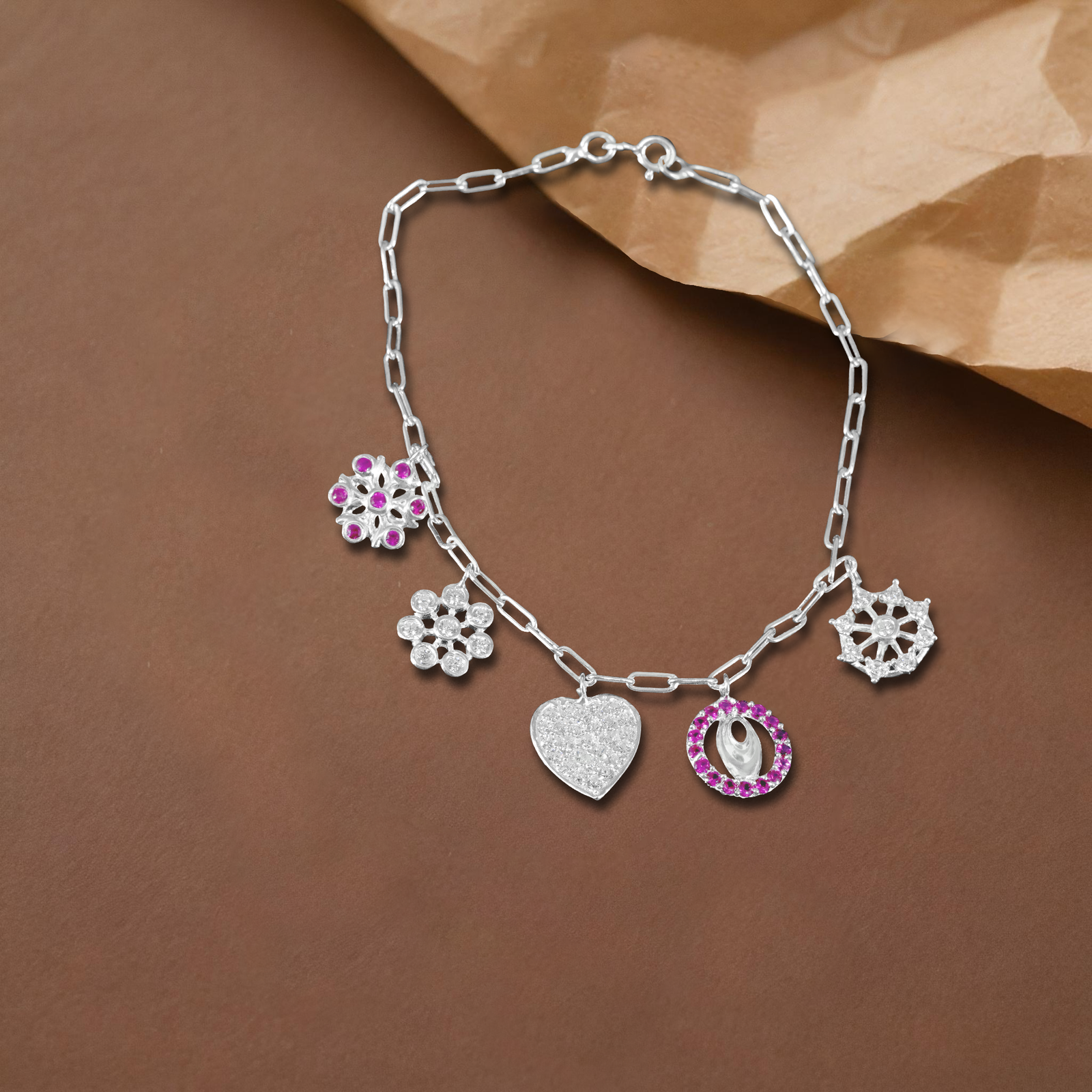 925 Sterling Silver Pink Spiral Charm Bracelet