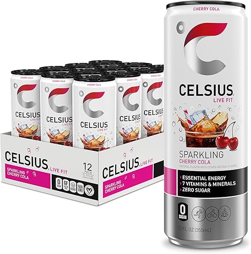 CELSIUS Sparkling Cherry Cola, Functional Essential Energy Drink 12 Fl Oz (Pack of 12)