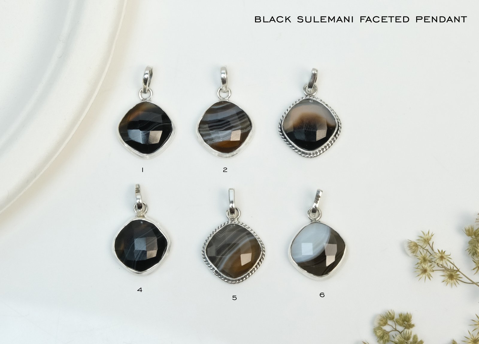 Premium Black Sulemani Faceted Pure Silver Pendant