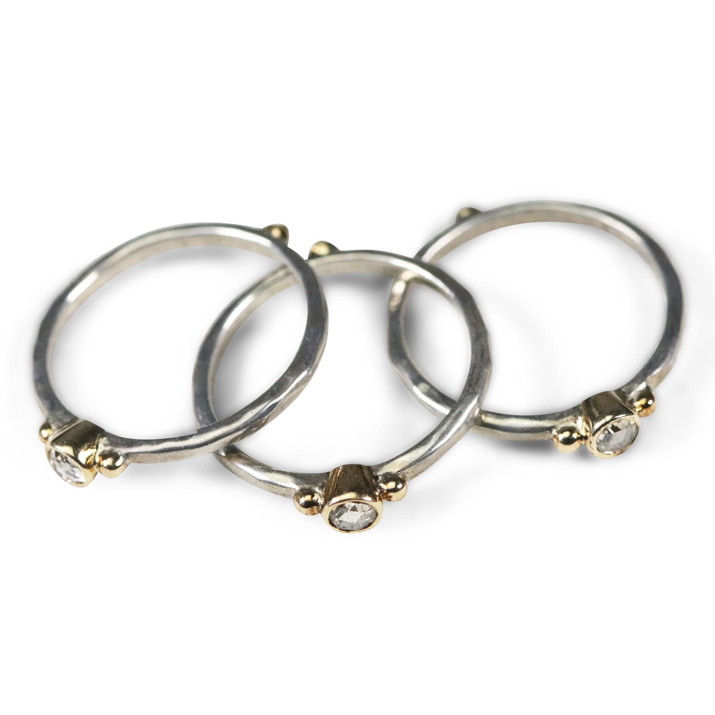 SET OF DIAMOND AND SILVER STACKING RINGS