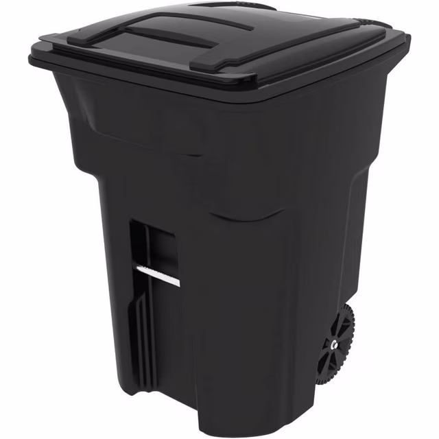 Residential Heavy Duty Two Wheeled Trash Can with Attached Lid, 96 Gallon, Black