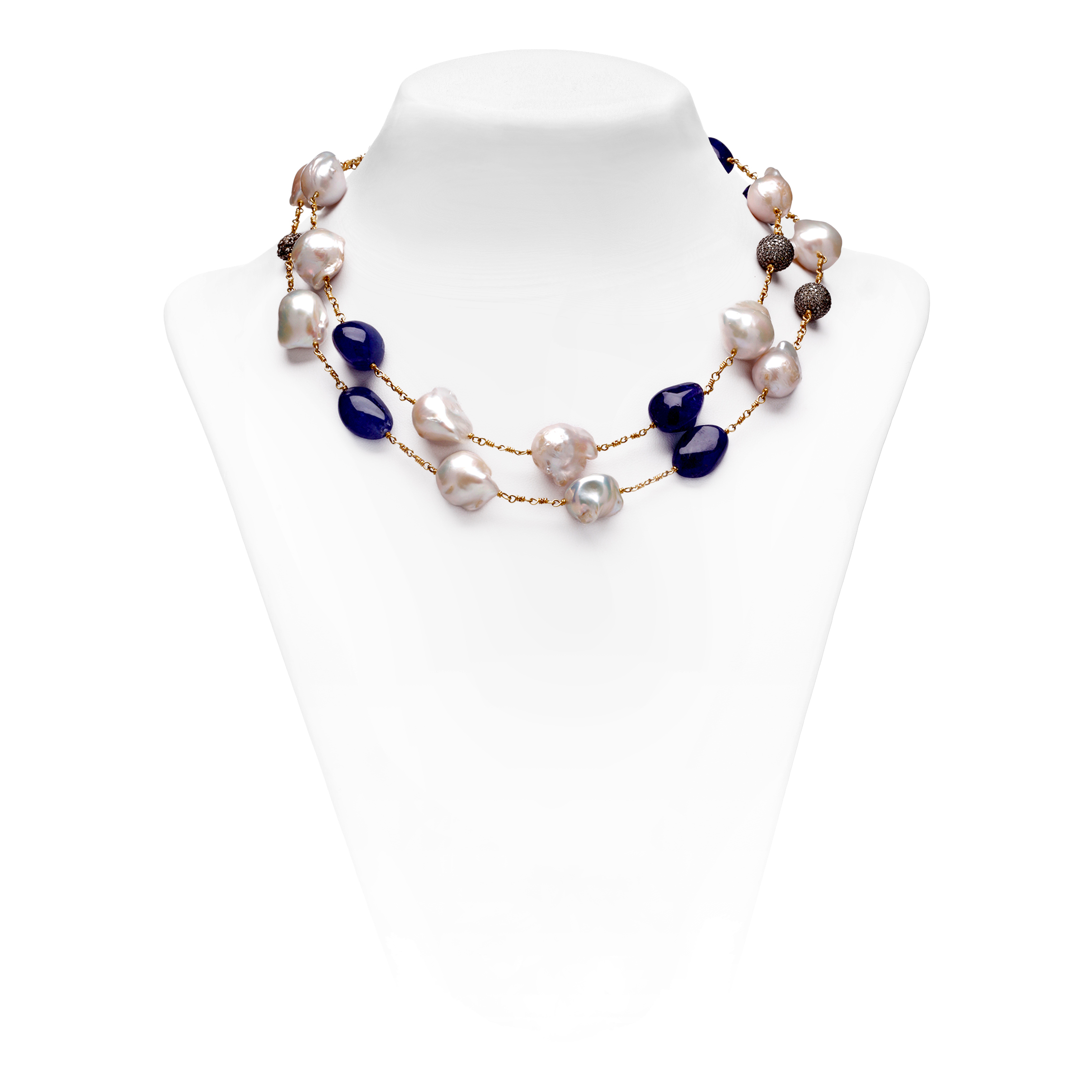 BAROQUE PEARL AND TANZANITE NECKLACE