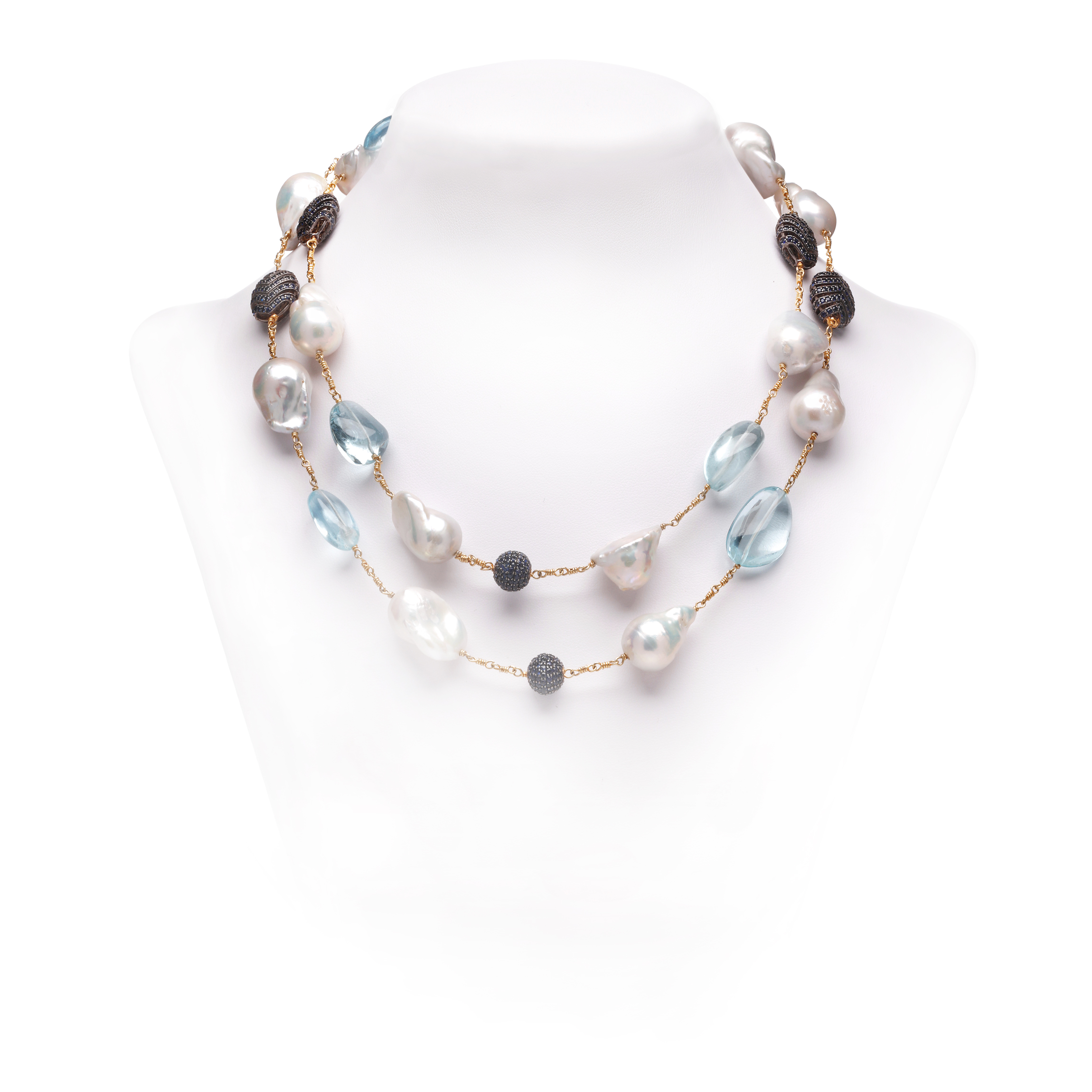 BAROQUE PEARL AND AQUAMARINE NECKLACE