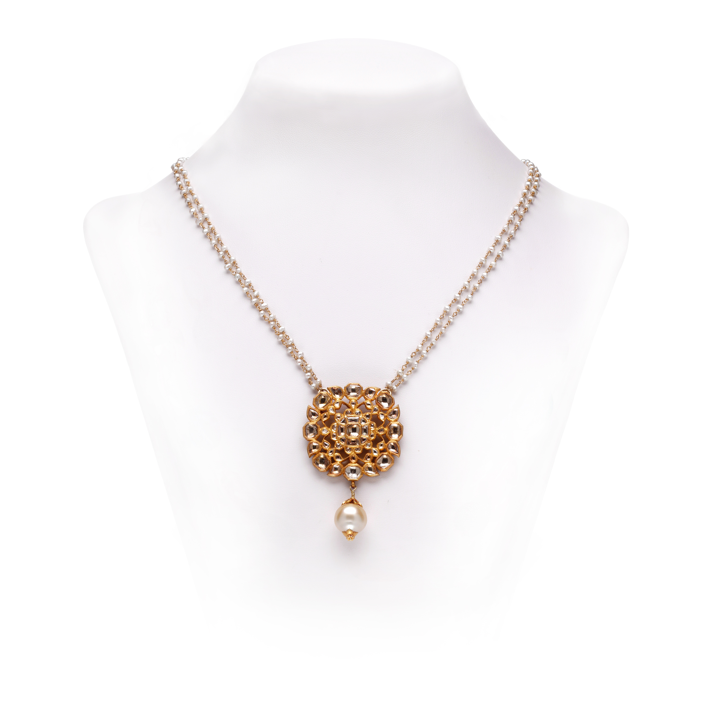 KUNDAN DIAMOND PENDANT ON A PEARL CHAIN