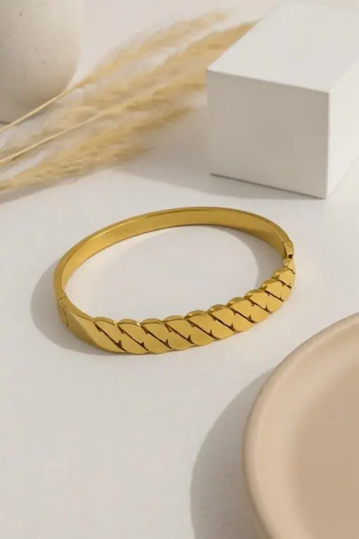 Korean Gold Twisted Cuff Minimal Bracelet (Bestseller)